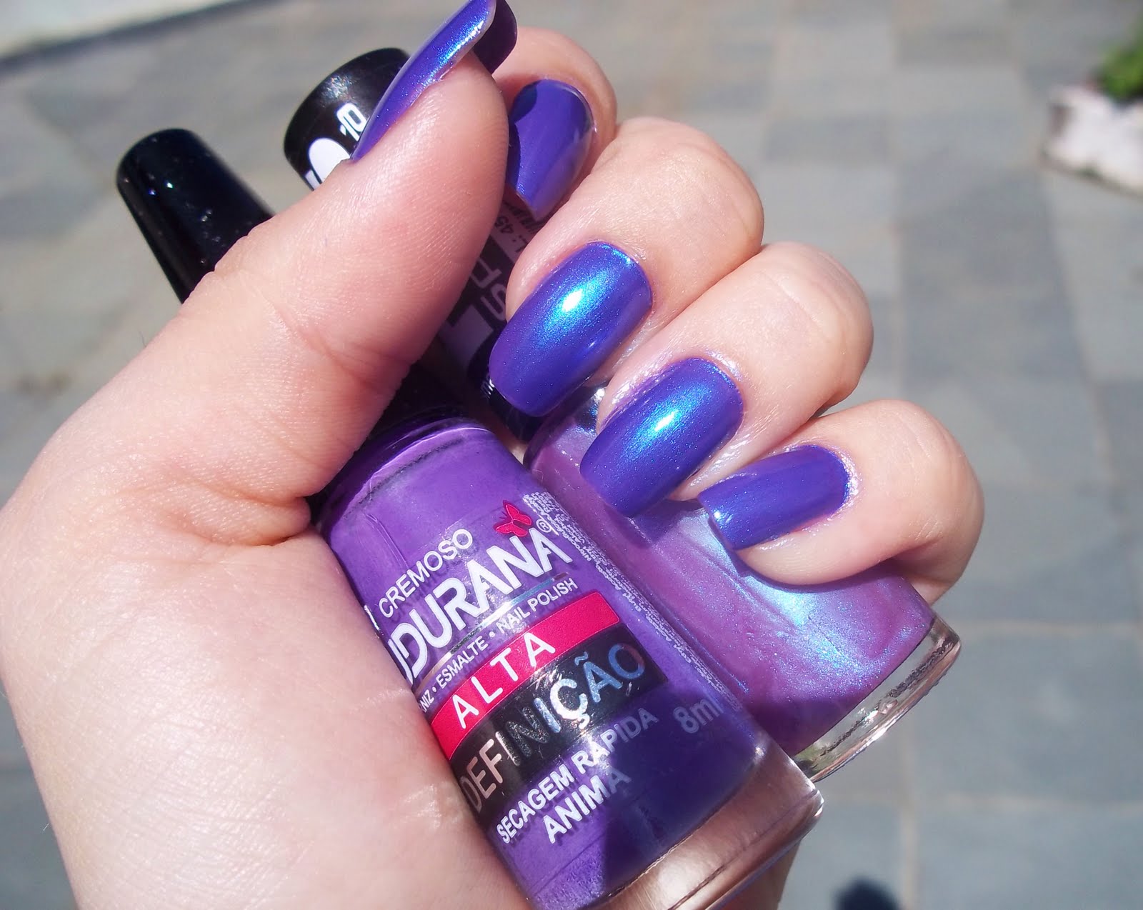 Como eu realmente gostei do Anima, aproveitei para ver como ficava com o Perolado 524 - Hits por cima, que ainda não tinha usado. Ele ganhou um tom cintilante com reflexos azulados, ficou muito bonito, más ando descobrindo que assim como os foscos, também não sou muito fã de cintilantes rs. Uso, porém não é qualquer um que ganha minha admiração. Enfim, preferi o Anima sozinho rs.