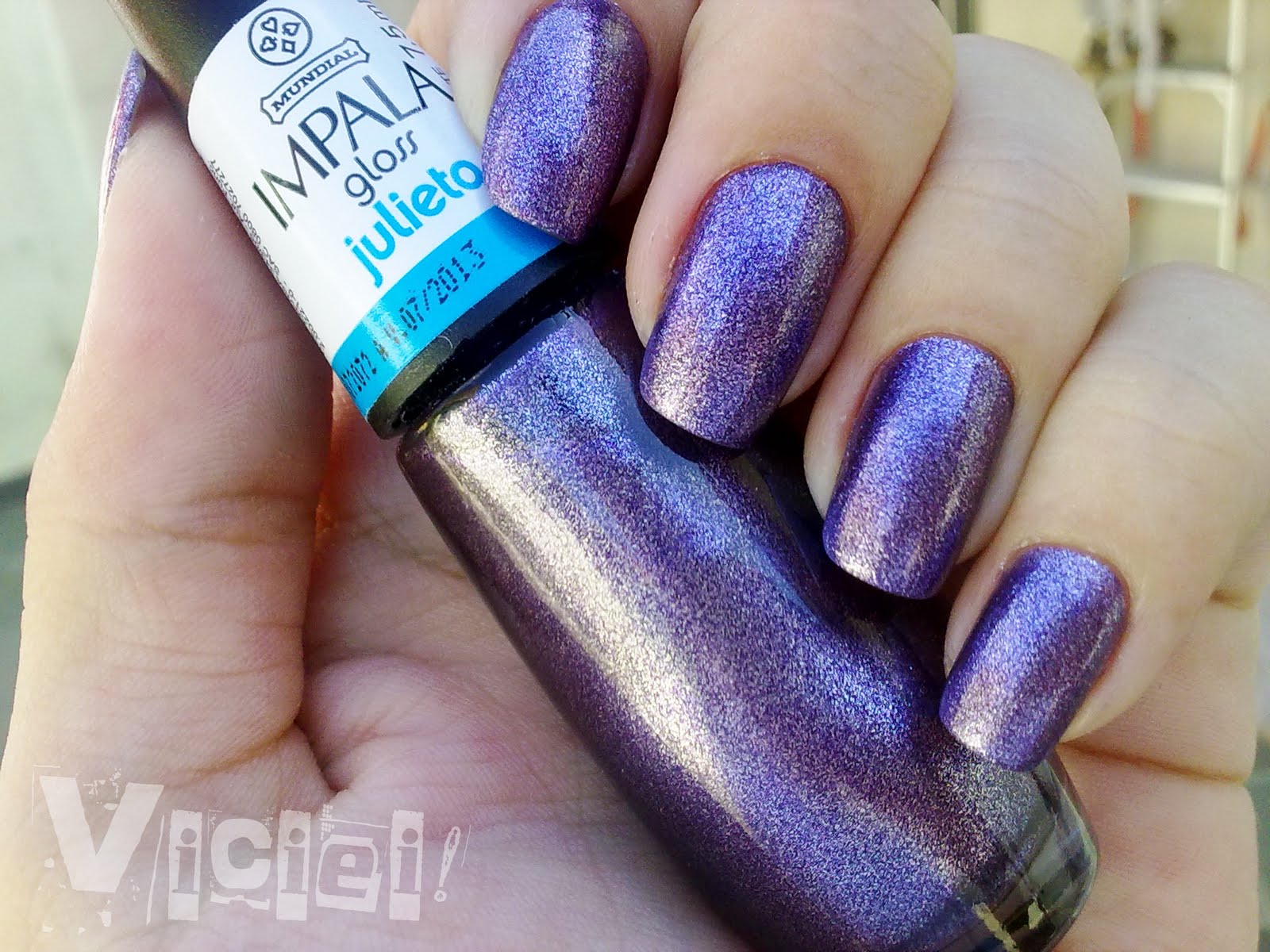O Julieta, não é um roxo comum, apesar de se tratar de uma cor forte (roxo), achei até que discreta e derivada do lilás, o que dá um tom um pouco mais delicado, tem efeito metalizado e brilha bastante, nem passei extra brilho, pois achei que daquele jeito estava perfeito. Muito fácil de passar, duas camadas finas e já esta pronto para sair.