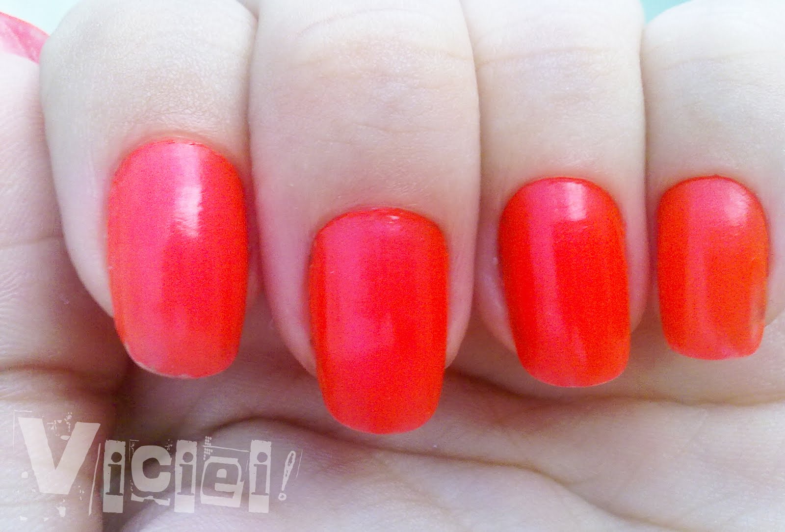 Achei o esmalte um pouco ralo, precisei de três camadas grossas para cobrir e mesmo assim, não achei que ficou perfeito, apesar disso, gostei da textura e a cor é bem viva, levemente fosco e neon.