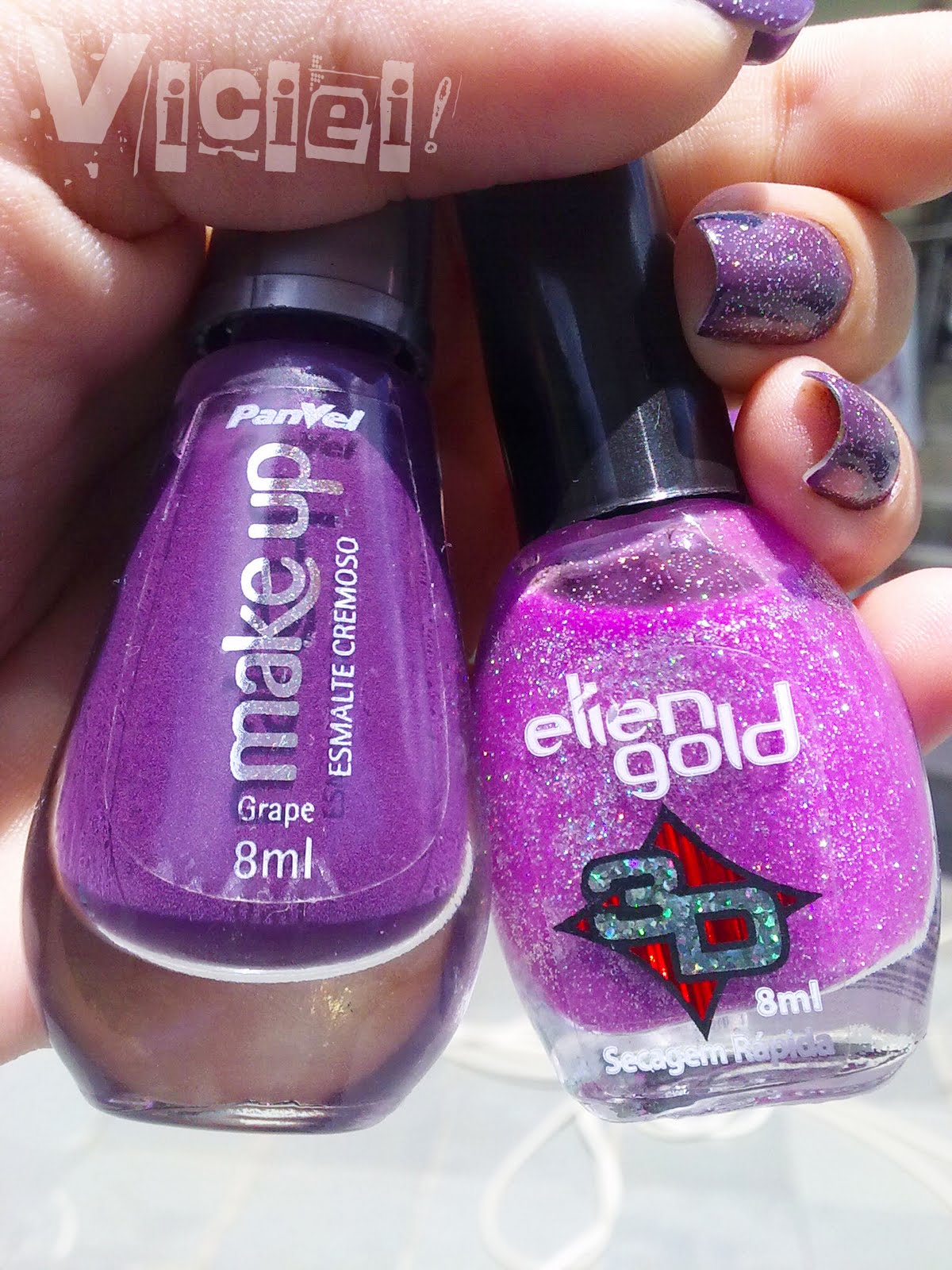 Um deles, é o Grape da Panvel, presentinho da Amanda que já postei aqui e como já tinha usado, aproveitei e passei o H1 - 3D Ellen Gold, para dar um charme a mais às minhas unhas.