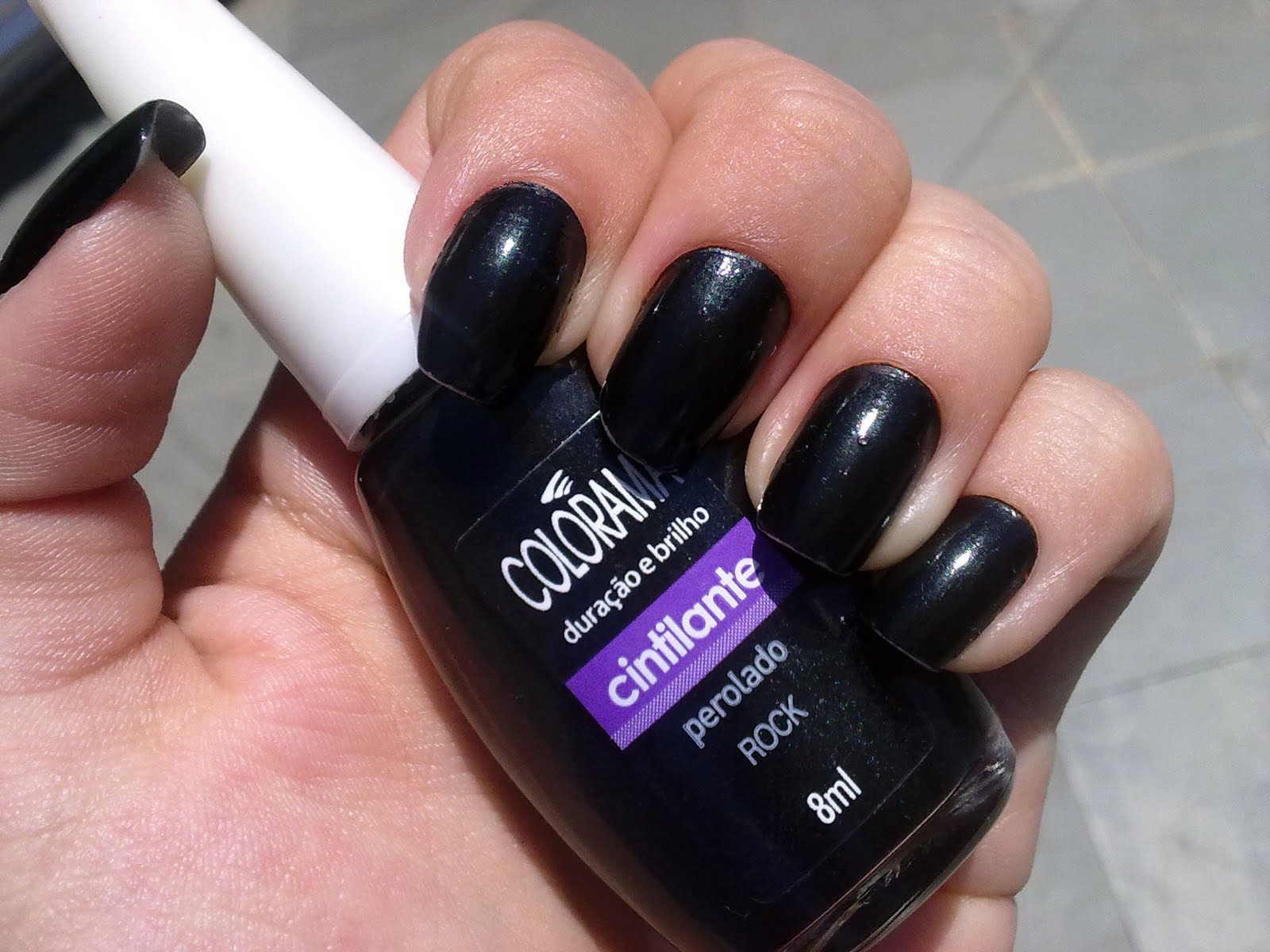 O Rock, de início não me chamou atenção por ser preto, mas quando o vi a venda, notei que ele tem um reflexo esverdeado, que me atraiu muito rs. Foi ai que veio a decepção, esmaltado ele perde o efeito, nem a luz do sol dava pra perceber o reflexo verde. Enfim, cair em tentação e compra-lo foi em vão, o que o diferenciava dos demais preto's não existia na pratica.