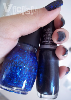 Escolhi o Metal Glam por ser um esmalte escuro e lindo dando um Up a mais no Deep Blue Ocean e definindo bem o seu efeito.