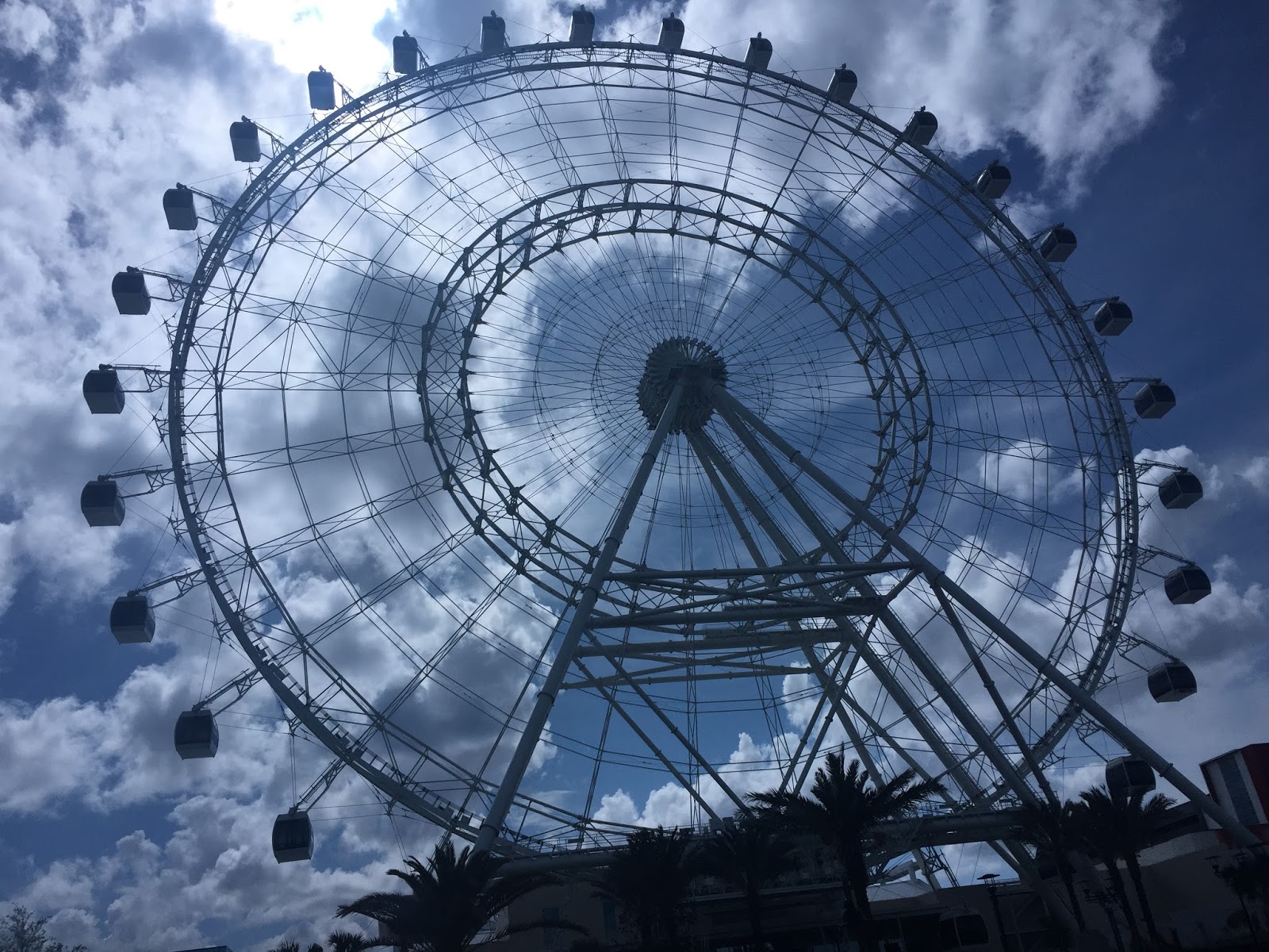 A Orlando Eye é realmente gigante e linda quando vista por fora. As cabines são bem confortáveis, amplas, com banquinho e ar-condicionado. Durante todo o trajeto é possível observar a cidade de Orlando e seus arredores, com uma gravação de fundo explicando sobre os locais que conseguimos ver.
